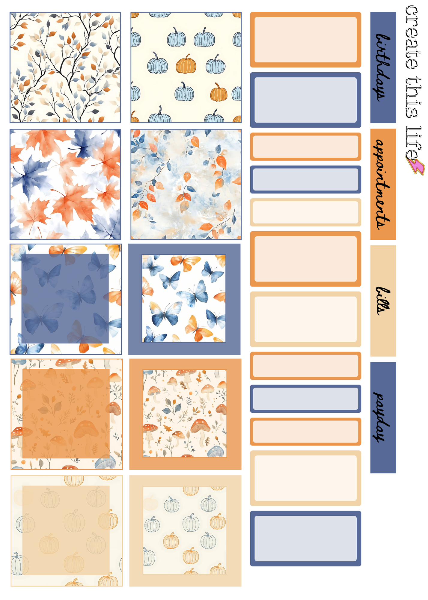between computers & mobile phones. All sheets are printed on 5x 7 " PREMIUM MATTE PAPER unless NOTED. WASHI Strips are printed on WASHI MATTE PAPER. Boxes/Columns/ Labels are measured for the Hobonichi A6 Cousin- but is able to be used in any similar planner/journal.