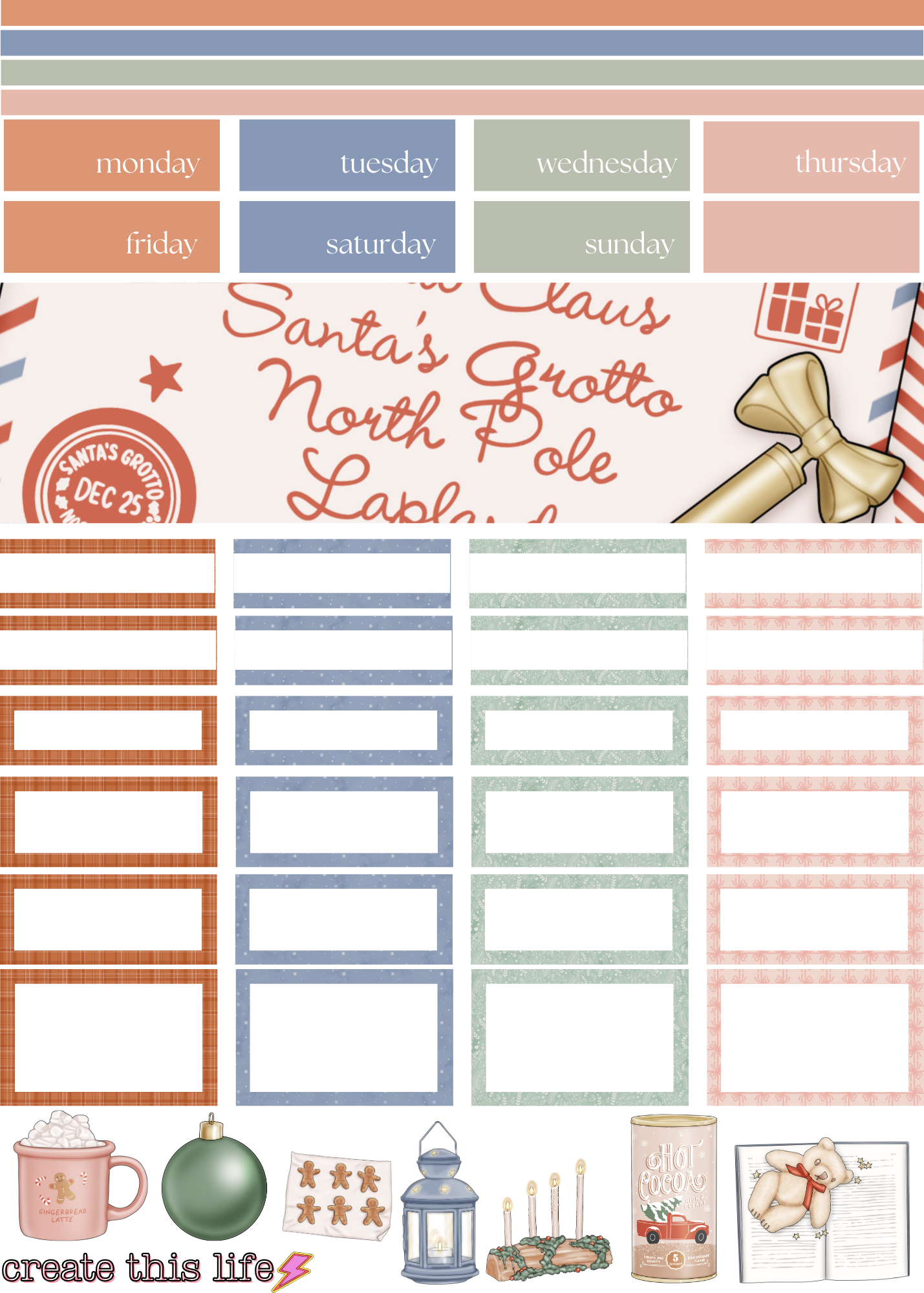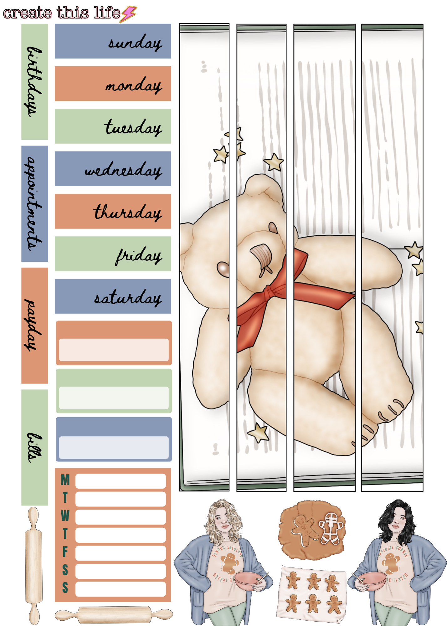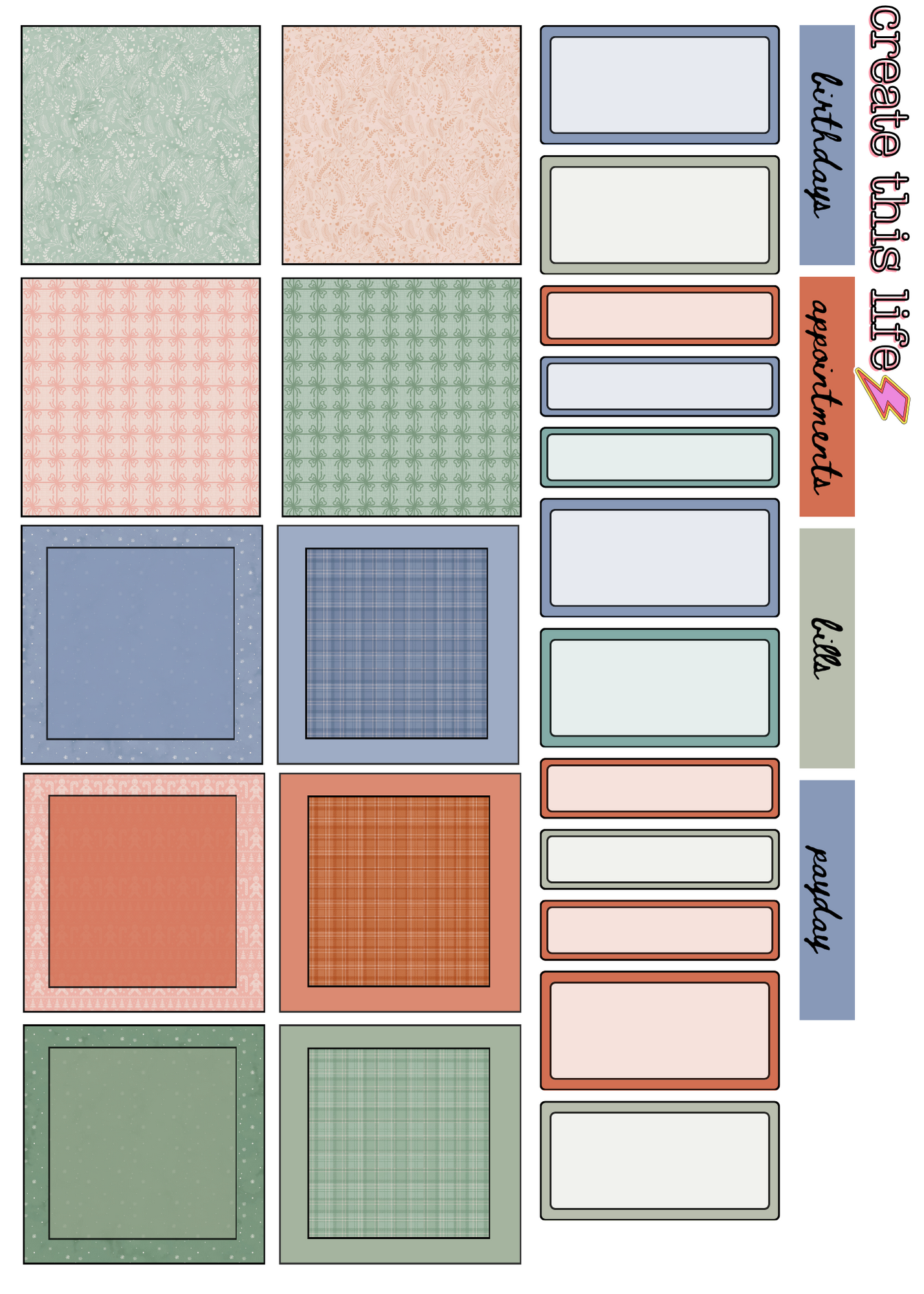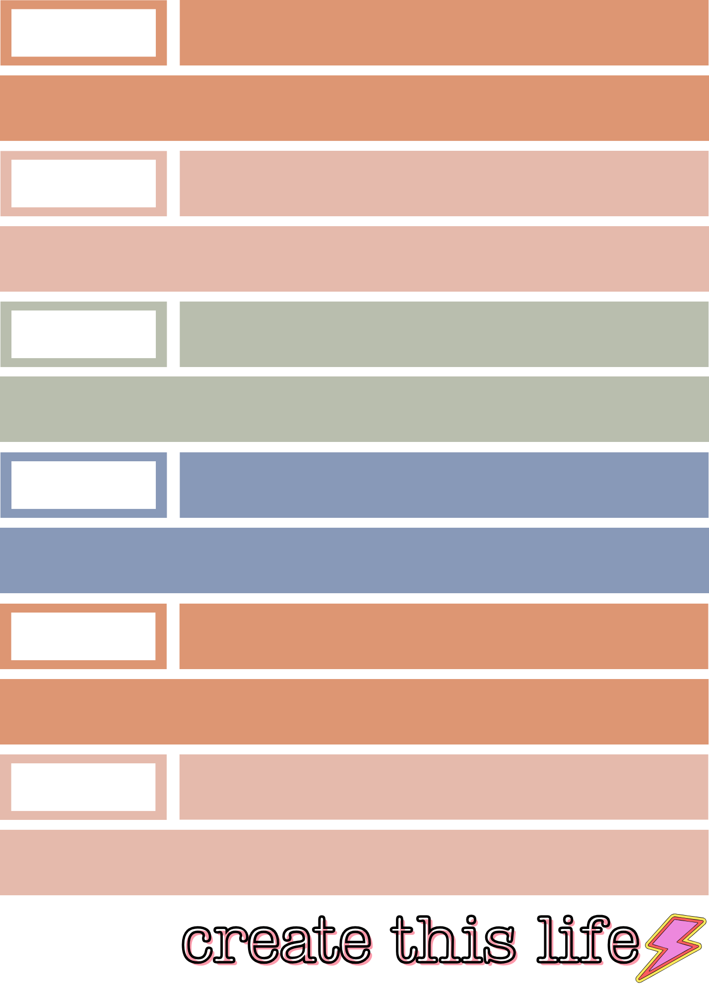 Boxes/Columns/ Labels are measured for the Hobonichi A6 Cousin- but is able to be used in any similar planner/journal.