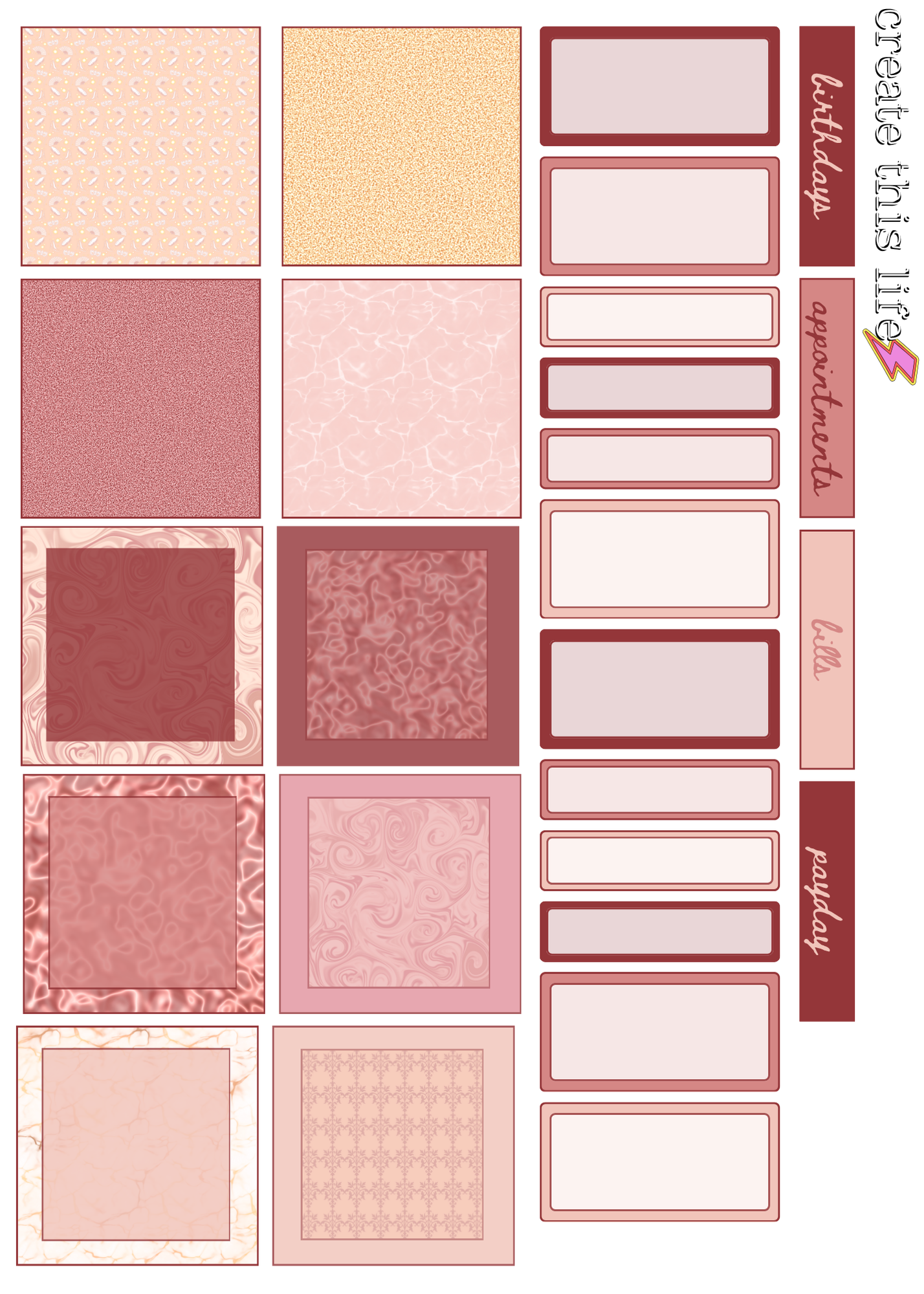 between computers & mobile phones. All sheets are printed on 5x 7 " PREMIUM MATTE PAPER unless NOTED. WASHI Strips are printed on WASHI MATTE PAPER. Boxes/Columns/ Labels are measured for the Hobonichi A6 Cousin- but is able to be used in any planner similar planner.