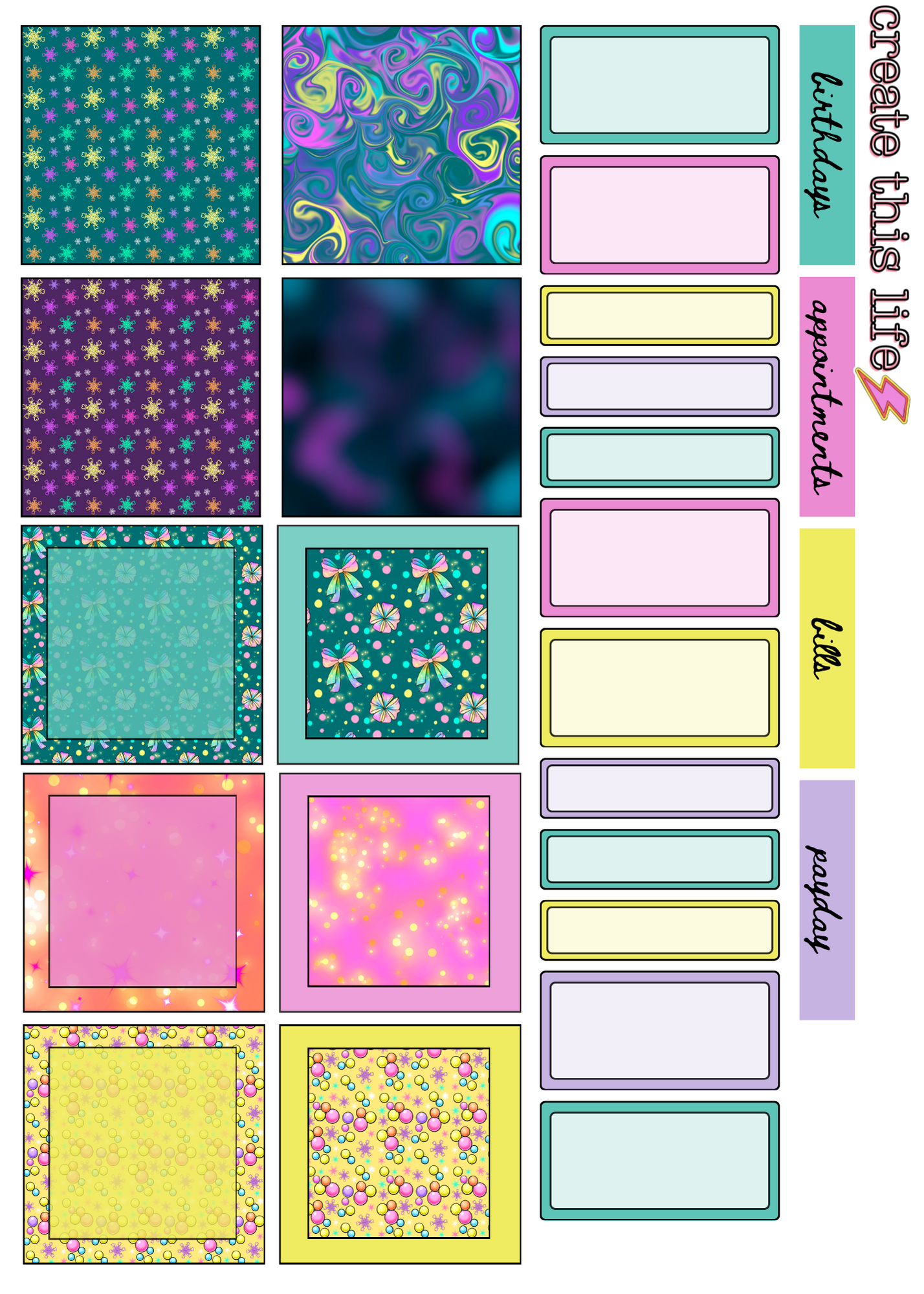 Boxes/Columns/ Labels are measured for the Hobonichi A6 Cousin- but is able to be used in any similar planner/journal.