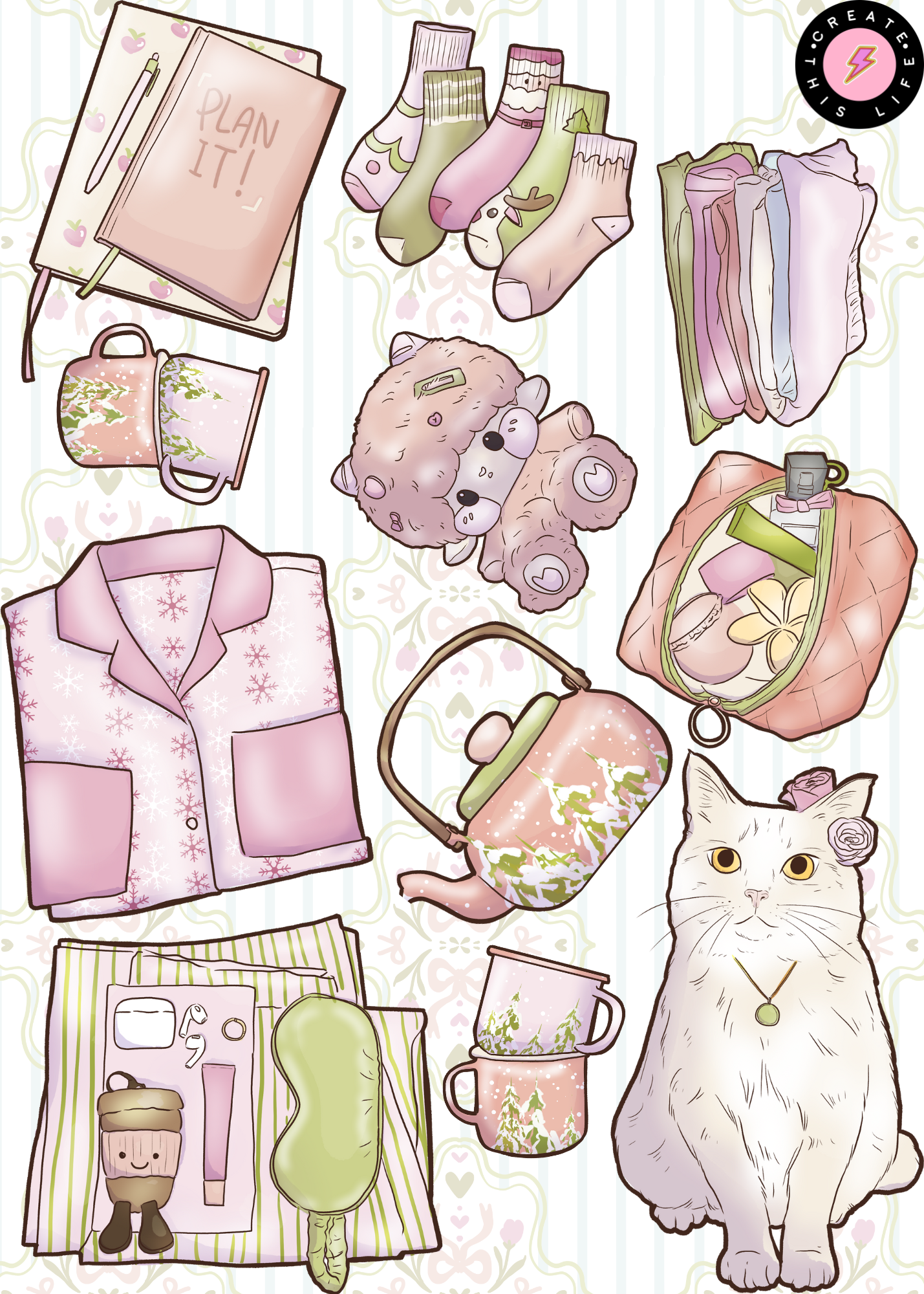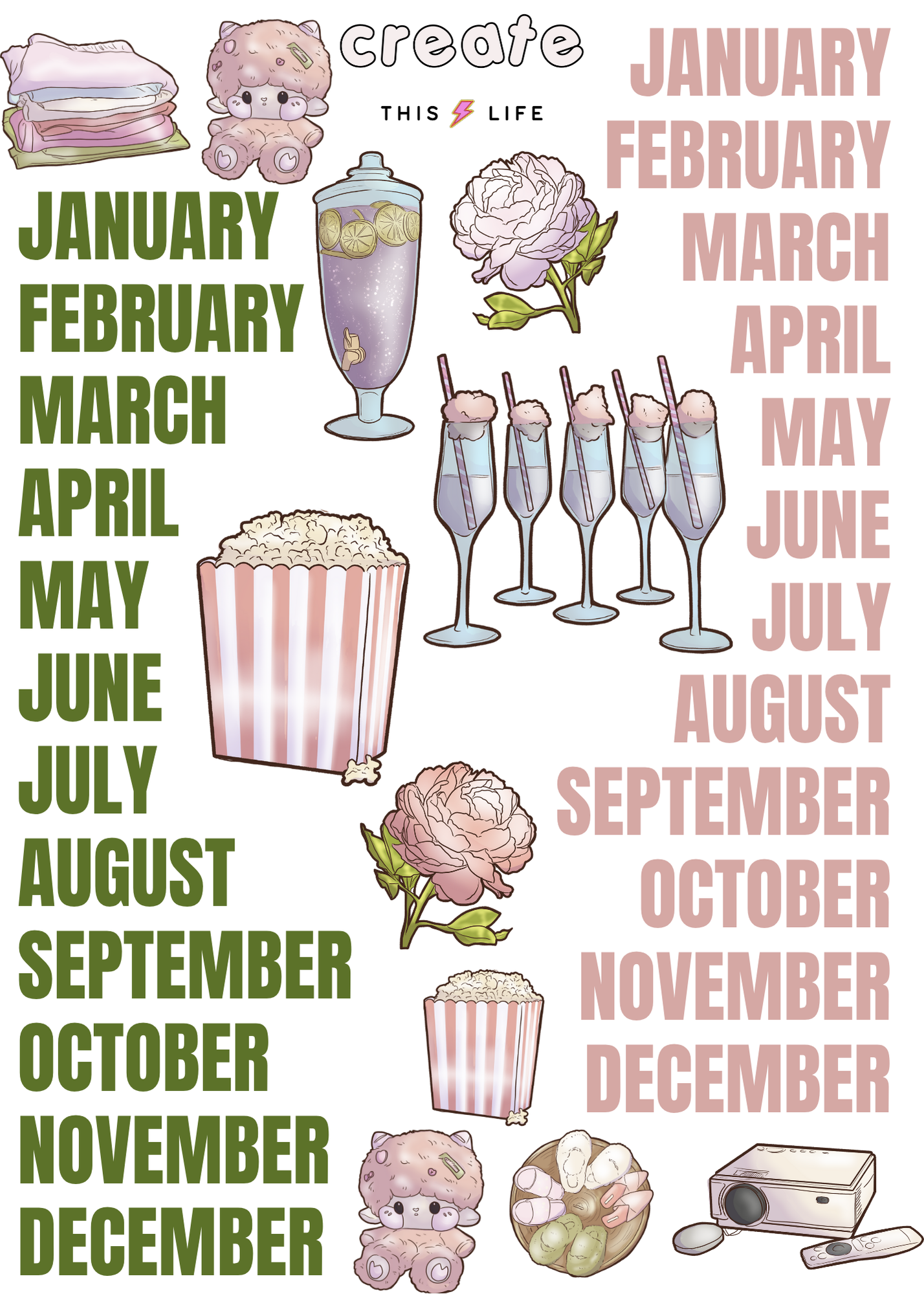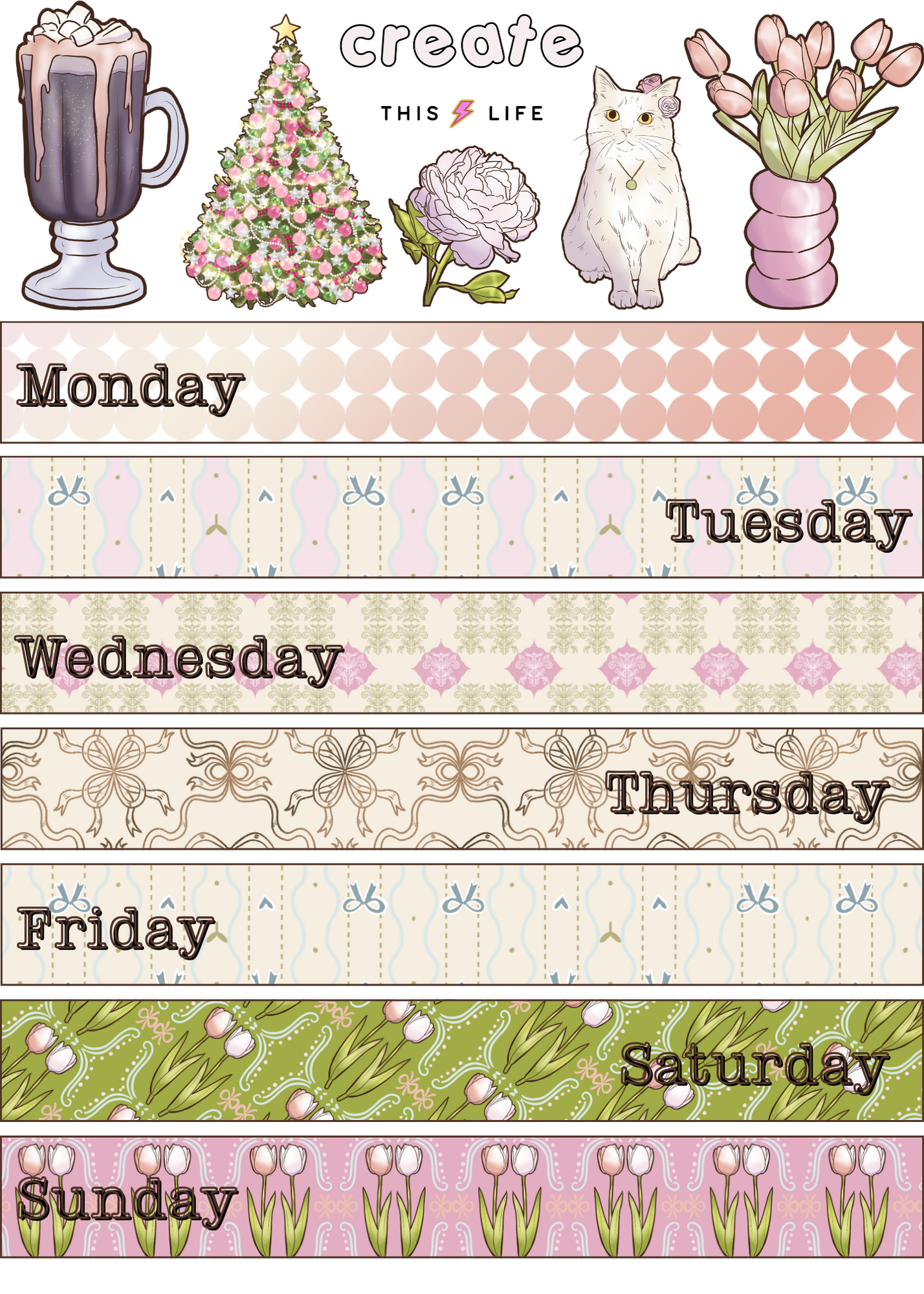 Boxes/Columns/ Labels are measured for the Hobonichi A6 Cousin- but is able to be used in any similar planner/journal.