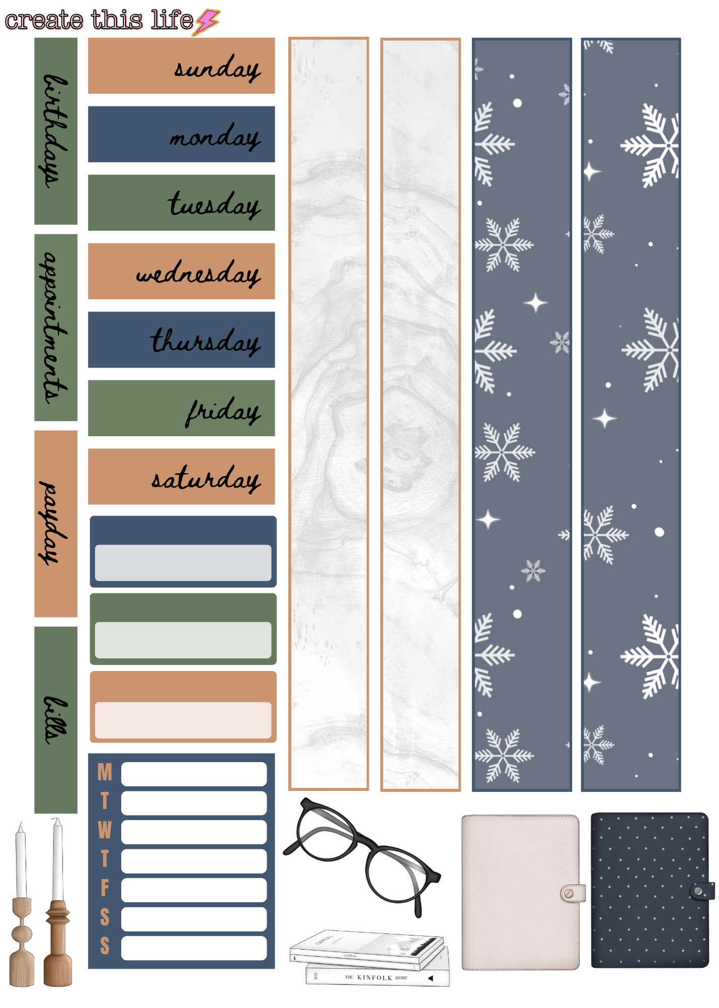 Boxes/Columns/ Labels are measured for the Hobonichi A6 Cousin- but is able to be used in any similar planner/journal.