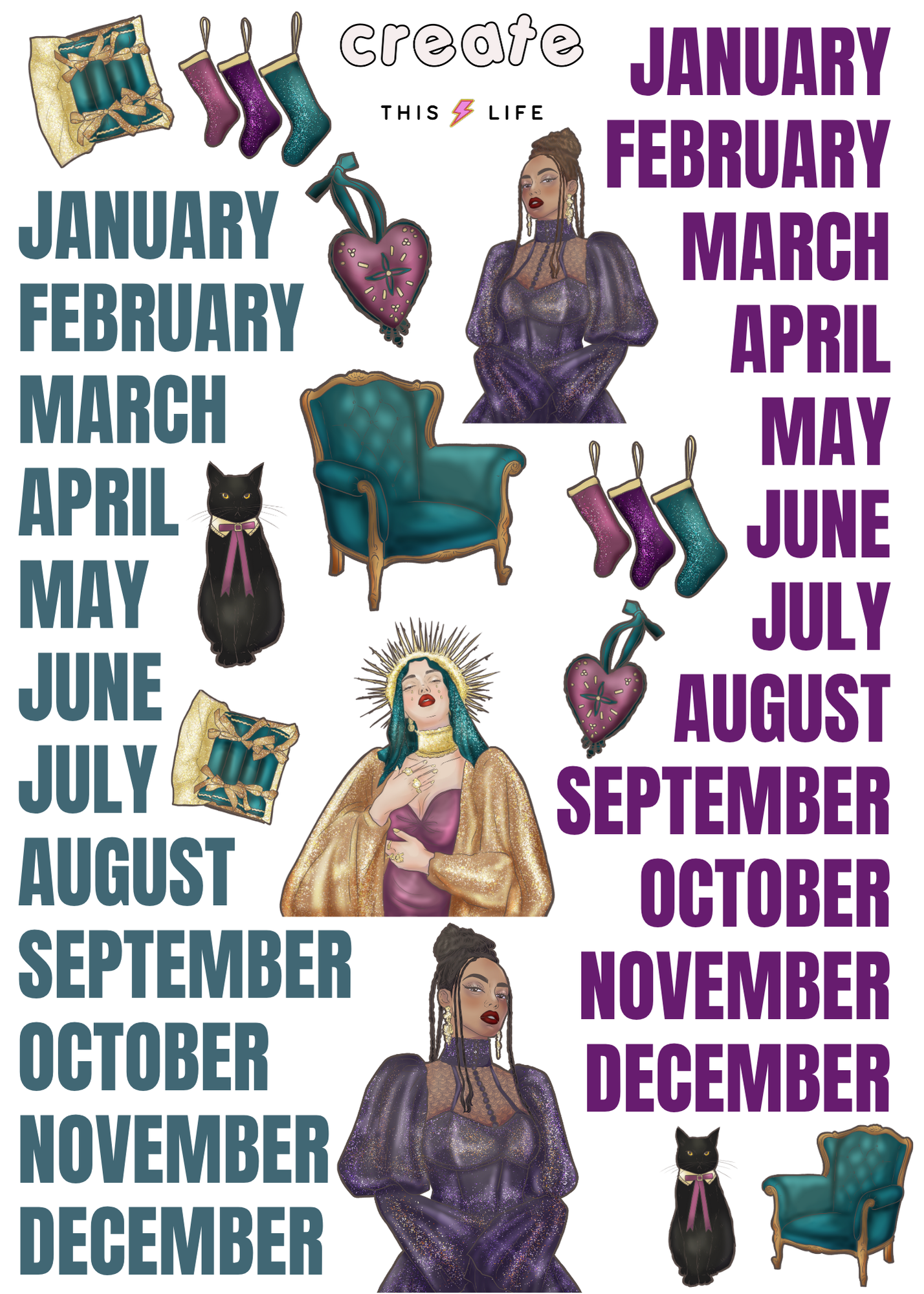 Boxes/Columns/ Labels are measured for the Hobonichi A6 Cousin- but is able to be used in any similar planner/journal.